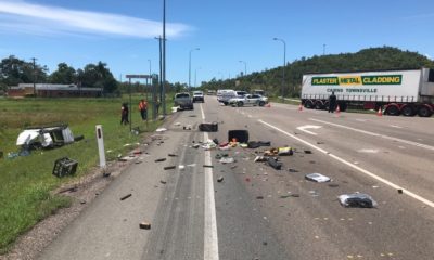 Police have arrested two people following two traffic crashes which closed the Bruce Highway at Deeragun today.
